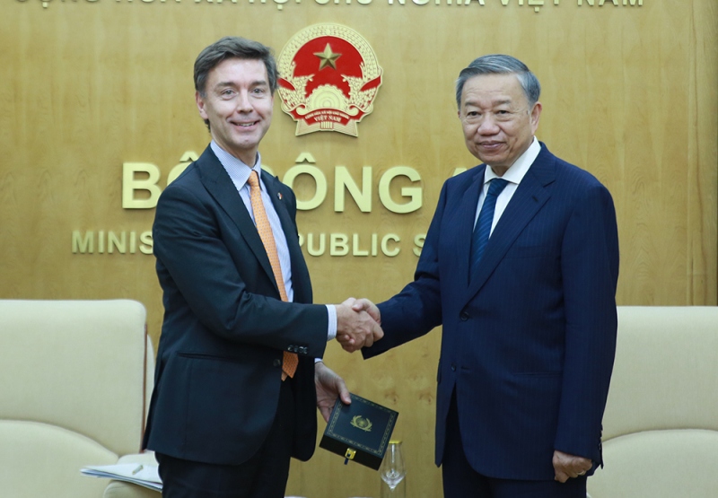 รัฐมนตรีว่าการกระทรวงรักษาความมั่นคงทั่วไปให้การต้อนรับเอกอัครราชทูตสหภาพยุโรปประจำเวียดนาม |