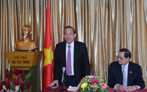 โดยได้แจ้งให้ทราบเกี่ยวกับสถานการณ์เศรษฐกิจสังคมของเวียดนามในหลายปีที่ผ่านมา พร้อมทั้งชื่นชมบทบาทของชมรมชาวเวียดนามที่อาศัยในประเทศสิงคโปร์และมีความประสงค์ว่า ชมรมชาวเวียดนามในประเทศสิงคโปร์จะส่งเสริมความสามัคคี การช่วยเหลือจุนเจือกันและอนุรักษ์เอกลักษณ์วัฒนธรรมเพื่อการพัฒนาอย่างเข้มแข็งและปรับตัวเข้ากับชุมชนและหวังว่า สถานทูตและสำนักงานตัวแทนของเวียดนามในสิงคโปร์จะพยายามผลักดันความสัมพันธ์หุ้นส่วนยุทธศาสตร์กับสิงคโปร์มากขึ้นเพื่อผลประโยชน์ของชาติและปฏิบัติหน้าที่การทูตประชาชนและวัฒนธรรมเป็นอย่างดี.