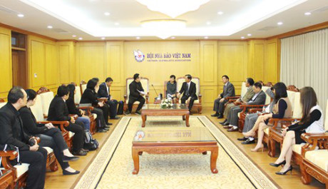 โดยชื่นชมผลความร่วมมือระหว่างสองสมาคมฯในเวลาที่ผ่านมา พร้อมทั้ง แสดงความประสงค์ว่า ความร่วมมือระหว่างสองฝ่ายจะได้รับการพัฒนามากขึ้น พร้อมทั้ง แจ้งให้คณะผู้แทนของสมาคมนักข่าวนักหนังสือพิมพ์แห่งประเทศไทยรับทราบเกี่ยวกับผลงานของการเปิดชั้นเรียนสอนภาษาไทยให้แก่นักข่าวเวียดนาม ซึ่งสร้างพื้นฐานให้แก่การส่งเสริมความเข้าใจระหว่างสองสมาคมฯ “พวกเราดีใจมากที่ได้เปิดชั้นเรียนสอนภาษาไทยให้แก่นักข่าวเวียดนามรวม30คน โดยได้รับความสนใจจากบรรดานักข่าวและประชามติ พวกเราหวังว่า หลังจากที่จบการฝึกอบรมดังกล่าว บรรดานักข่าวของเวียดนามสามารถอ่านหนังสือพิมพ์ของไทยได้ เช่น หนังสือพิมพ์ไทยรัฐ พวกเราดีใจมากที่บรรดานักข่าวนิยมการเรียนภาษาไทย เพื่อให้ความร่วมมือระหว่างสองสมาคมให้เป็นรูปธรรม การฝึกอบรมด้านภาษาเป็นด้านที่ต้องได้รับความสนใจ”