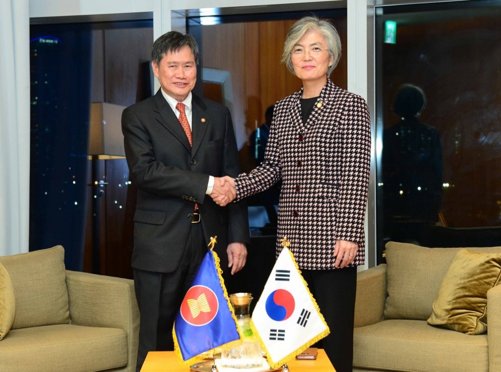 รัฐมนตรีต่างประเทศสาธารณรัฐเกาหลี Kang Kyung-wha กับเลขาธิการอาเซียน Lim Jock Hoi (Yonhap/baoquocte.vn) |