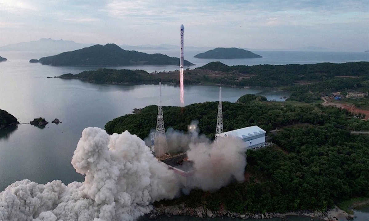 จรวดมัลลิยอง-1 พร้อมดาวเทียมทหารออกจากพื้นที่ปล่อยตัวในเขตโชลซัน สาธารณรัฐประชาธิปไตยประชาชนเกาหลี เมื่อวันที่ 31 พฤษภาคมปี 2023 (KCNA) |