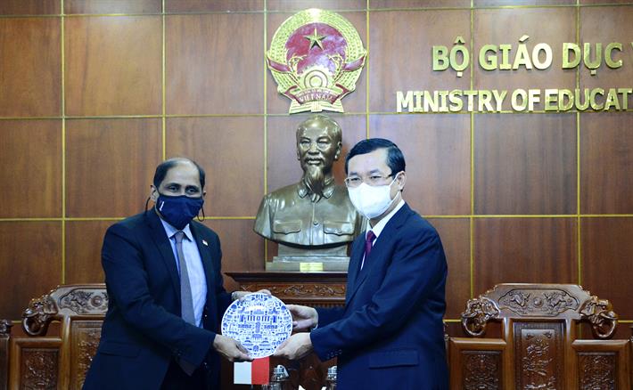 ส่วนนาย Jaya Ratnam ได้ยืนยันให้ความสำคัญต่อความร่วมมือด้านการศึกษาและฝึกอบรมกับเวียดนาม พร้อมทั้งกล่าวขอบคุณเวียดนามที่สนับสนุนสิงคโปร์ในฐานะประธานสภารัฐมนตรีศึกษาแห่งเอเชียตะวันออกเฉียงใต้วาระปี 2021-2022 และเผยว่า สิงคโปร์มีกิจกรรมสอนภาษาเวียดนามให้แก่ประชาชนและมีความประสงค์ว่า จะได้รับการประสานงานจากเวียดนามและนักศึกษาของทั้งสองประเทศจะขยายการแลกเปลี่ยนมากขึ้น.