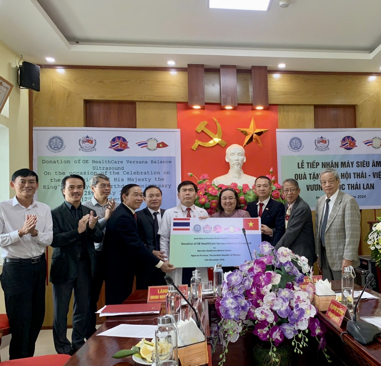 ในการนี้ นาย อัครภณ เศวตกมล ตัวแทนของสมาคมมิตรภาพไทย-เวียดนามและสภาธุรกิจไทย-เวียดนามได้แสดงความยินดีที่ได้ไปเยือนบ้านเกิดของประธานโฮจิมินห์ พร้อมทั้งเผยว่า กิจกรรมมอบเครื่องอัลตราซาวด์ เป็นความพยายามของทั้งสองสมาคม มุ่งสู่การดูแลสุขภาพในชุมชนและมีความประสงค์ว่า ความร่วมมือด้านสาธารณสุขระหว่างสองประเทศจะนับวันพัฒนาในเวลาที่จะถึง