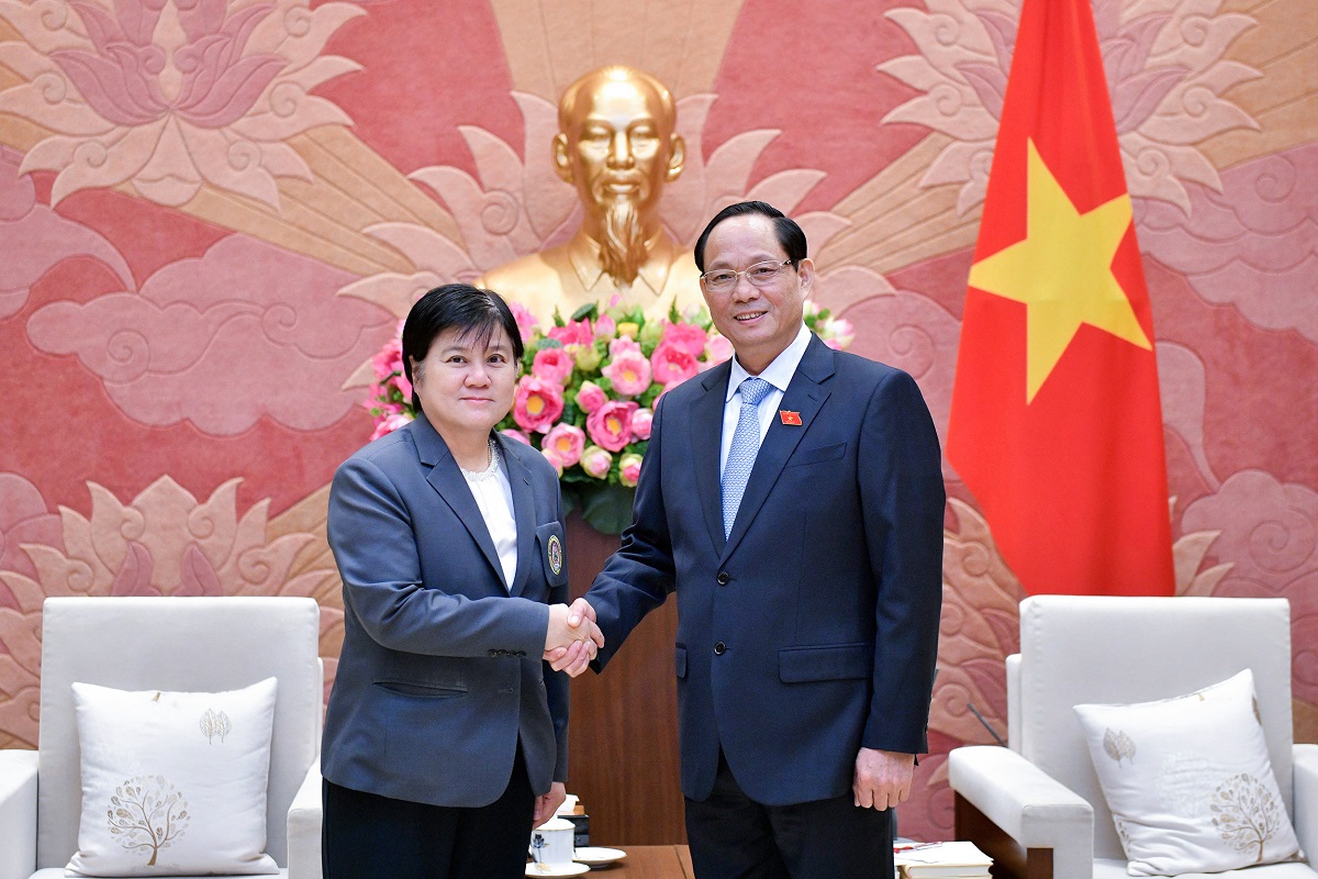 นาย เจิ่นกวางเฟือง รองประธานสภาแห่งชาติให้การต้อนรับผศ.ดร.คณิศรา ธัญสุนทรสกุล อธิการบดี มหาวิทยาลัยราชภัฏอุดรธานี ประเทศไทย (quochoi.vn) |