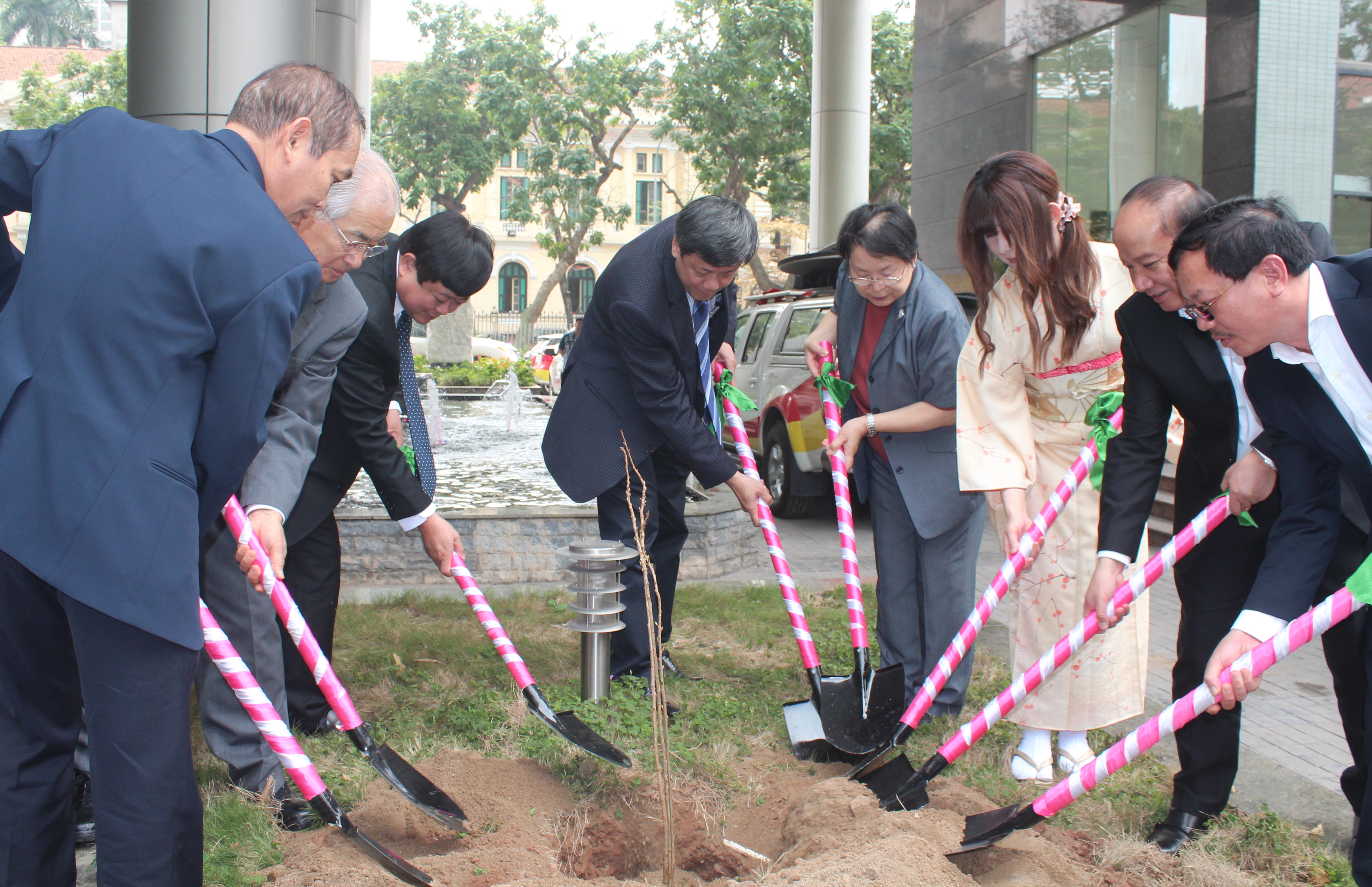 ในการกล่าวปราศรัยในพิธี นายเหงียนเท้กี๋ ประธานสถานีวิทยุเวียดนามได้ชื่นชมระบบการศึกษาของญี่ปุ่นและเผยว่า นักเรียนและนักศึกษาเวียดนามกำลังถือญี่ปุ่นเป็นประเทศที่น่าไปศึกษาต่อ ส่วนความร่วมมือด้านสื่อมวลชนระหว่างญี่ปุ่นกับเวียดนามได้มีขึ้นอย่างมีประสิทธิภาพในหลายปีที่ผ่านมาและขอบคุณที่ทางโรงเรียนได้มอบต้นซากุระให้แก่สถานีวิทยุเวียดนาม “ดอกซากุระคือสัญลักษณ์ของจิตใจ ของฤดูใบไม้ผลิและพลังชีวิตของชาวญี่ปุ่น ในหลายปีมานี้ เทศกาลดอกซากุระได้จัดขึ้นในกรุงฮานอยและท้องถิ่นต่างๆของเวียดนาม ซึ่งช่วยให้คนเวียดนามมีความคุ้นเคยกับต้นซากุระ ดังนั้นการมอบต้นซากุระให้แก่สถานีวิทยุเวียดนามในวันนี้ถือเป็นกิจกรรมที่มีคุณค่าเป็นอย่างมาก สถานีวิทยุเวียดนามในฐานะสำนักงานสื่อสารมวลชนจะพยายามอย่างสุดความสามารถเพื่อเสริมสร้างความสัมพันธ์ร่วมมือมิตรภาพและหุ้นส่วนยุทธศาสตร์อย่างกว้างลึกระหว่างเวียดนามกับญี่ปุ่น เราหวังว่า ความสัมพันธ์ทางเศรษฐกิจ การค้า การลงทุน วัฒนธรรมและการศึกษาระหว่างเวียดนามกับญี่ปุ่นจะนับวันพัฒนามากขึ้น”