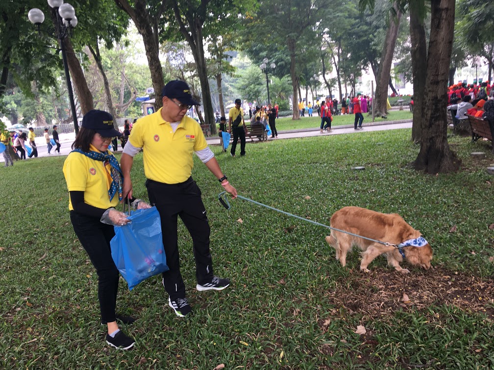ผู้ที่เข้าร่วมกิจกรรมได้ไปเก็บขยะบริเวณอนุสาวรีย์กษัตริย์ลี้ท้ายโต๋ ไปจนถึงบริเวณทะเลสาบหว่านเกี๋ยม นาย ธานี แสงรัตน์ เอกอัครราชทูตไทย ณ กรุงฮานอยได้เผยว่า“ทะเลสาบหว่านเกี๊ยมเป็นจุดท่องเที่ยวสำคัญของกรุงฮานอย มีนักท่องเที่ยวเดินทางมาเที่ยวจากทั่วโลก แล้วคนเวียดนามมาพักผ่อนที่นี่จำนวนมาก แต่ว่า ก็ยังมีผู้คนบางคนทิ้งขยะรอบๆทะเลสาบ ไม่ค่อยสะอาด เราทำอย่างนี้ไม่ใช่แค่เก็บขยะ ทำความสะอาดครั้งเดียว แต่ว่า เราทำ เราสามารถสร้างจิตสำนึกให้คนที่เขาเห็นว่า กลุ่มคนเสื้อเหลืองกำลังทำอะไรกัน บางคนก็ช่วยเราเก็บด้วย ก็เป็นการสร้างจิตสำนึก รณรงค์ประชาสัมพันธ์ในตัว”