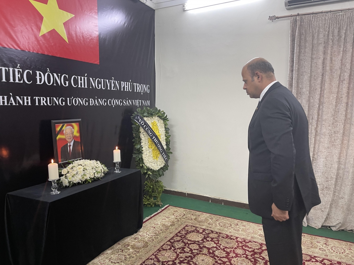 ส่วนที่สถานทูตเวียดนามประจำอียิปต์ก็มีคณะผู้แทนทูตานุทูตของประเทศต่างๆ ในอียิปต์ เช่น ญี่ปุ่น สิงคโปร์ ฟิลิปินส์ สาธารณรัฐประชาธิปไตยประชาชนเกาหลี บรูไน รวันดา ไทย อินโดนีเซีย ซีเรียและเมียนมาร์ รวมทั้งตัวแทนของประธานาธิบดีอียิปต์และสันนิบาตอาหรับหรือ AL ได้เดินทางมาไว้อาลัยและเขียนข้อความในสมุดไว้อาลัย