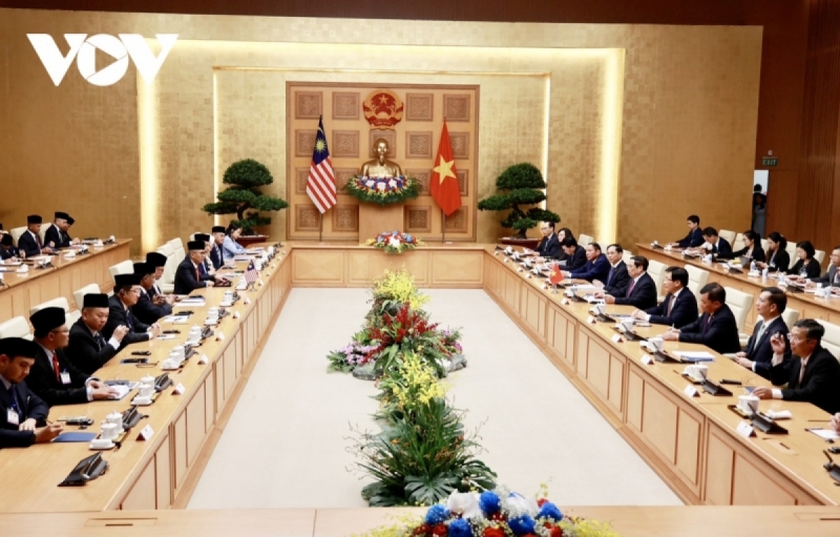 ภาพการพบปะระหว่างนายกรัฐมนตรีเวียดนาม ฝ่ามมิงห์จิ๊งห์ และนายกรัฐมนตรีมาเลเซีย Anwar Ibrahim |