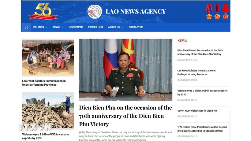 ในเว็บไซต์ของสำนักข่าวลาว ลงบทความเรื่อง "ฉลองครบรอบ 70 ปีชัยชนะเดียนเบียนฟู" โดยย้ำถึงชัยชนะที่รุ่งโรจน์ที่สุดในประวัติศาสตร์การต่อสู้ของประชาชาติเวียดนามกับผู้รุกรานจากต่างประเทศที่ถูกบันทึกไว้ในประวัติศาสตร์เวียดนามและประวัติศาสตร์โลกในศตวรรษที่ 20 ส่วนในหนังสือพิมพ์อิเล็กทรอนิกส์ของวิทยุแห่งชาติลาวมีบทความเรื่อง "ชัยชนะเดียนเบียนฟูส่งเสริมขบวนการปลดปล่อยและการสถาปนาสาธารณรัฐประชาธิปไตยประชาชนลาว"