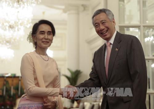 (VOVworld) - วันที่ 30 พฤศจิกายน นาง อองซานซูจี ที่ปรึกษาแห่งรัฐและรัฐมนตรีว่าการกระทรวงการต่างประเทศเมียนมาร์ได้เดินทางไปเยือนประเทศสิงคโปร์อย่างเป็นทางการเป็นเวลา 3 วัน โดยมีการพบปะกับนายกรัฐมนตรีสิงคโปร์และยืนยันว่า เมียนมาร์กำลังเผชิญกับความท้าทายต่างๆแต่จากการสนับสนุนและความเห็นอกเห็นใจจากหุ้นส่วนทั้งภายในและต่างประเทศ ประชาชนและรัฐบาลเมียนมาร์จะสามารถเปลี่ยนแปลงและฟันฝ่าอุปสรรคต่างๆได้