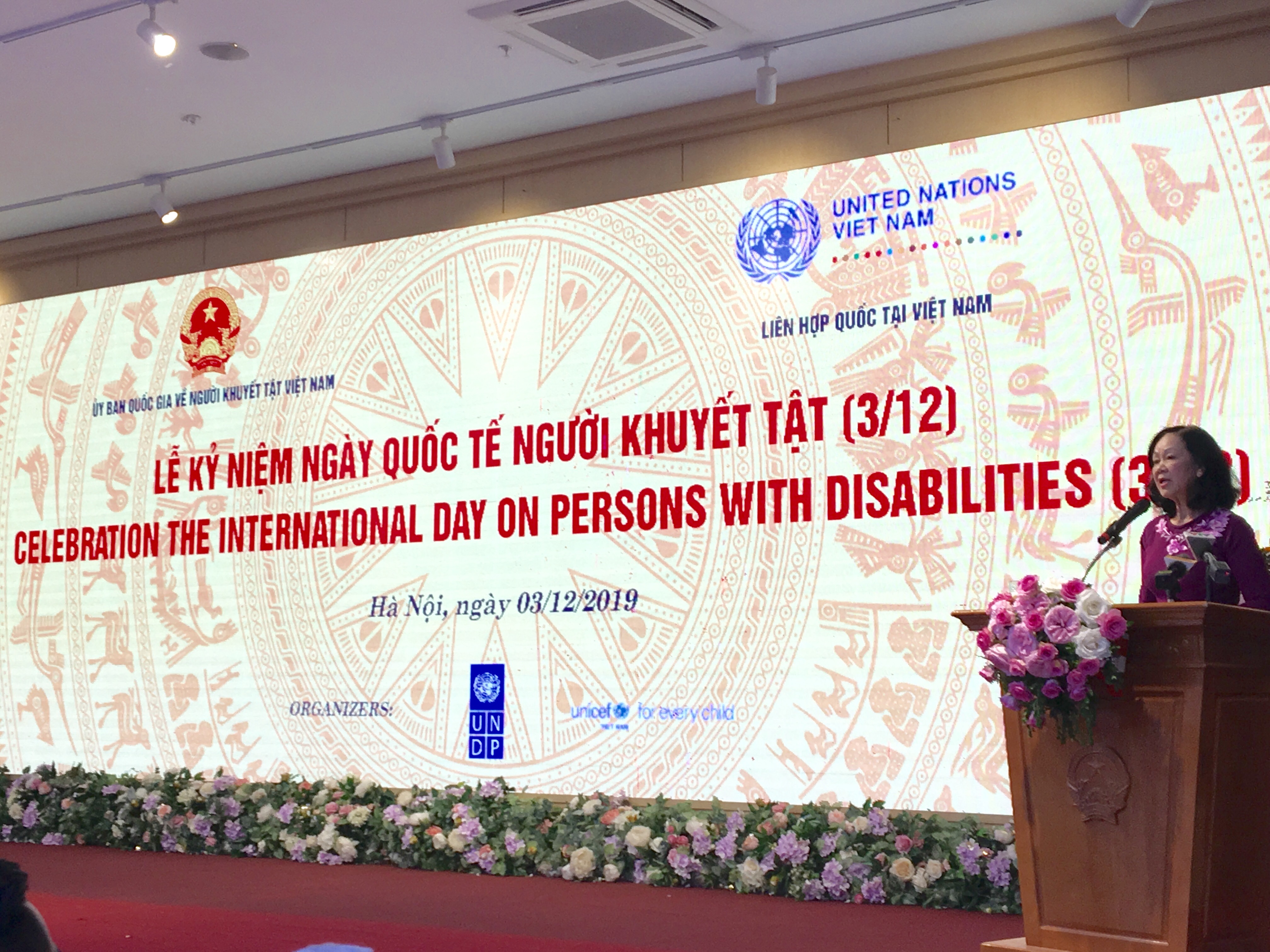ส่วนหัวหน้าคณะตัวแทนของ UNDP ในเวียดนาม Caitlin Wiesen ได้ชื่นชมความพยายามและผลงานของเวียดนามในการปฏิบัติสิทธิของคนพิการและมีความประสงค์ว่า คนพิการเวียดนามจะมีส่วนร่วมพัฒนาประเทศ