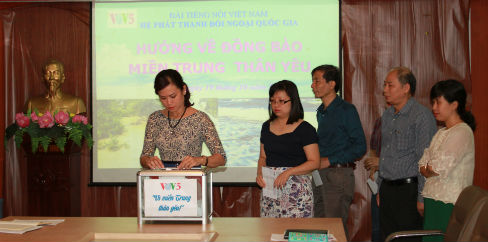โดยบรรดาเจ้าหน้าที่ นักข่าว บรรณาธิการและผู้เชี่ยวชาญที่กำลังทำงานในวีโอวี๕ได้ร่วมบริจาคเงินรวม๒๐ล้านด่ง นาย เหงวียนเตี๊ยนลอง ผู้อำนวยการวีโอวี๕ได้เผยว่า นี่เป็นการเรี่ยไรเงินก้อนแรกเพื่อขานรับกองทุน “เพื่อภาคกลางที่รัก”ที่จัดโดยสถานีวิทยุเวียดนามเมื่อวันที่๑๘ตุลาคมเพื่อช่วยเหลือประชาชนภาคกลางในการแก้ไขผลเสียหายจากภัยพิบัติ