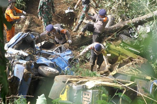 หน่วยกู้ภัยค้นหาผู้ประสบภัยหลังเหตุแผ่นดินไหวในเมือง Cianjur จังหวัดชวาตะวันตก ประเทศอินโดนีเซียเมื่อวันที่ 22 ตุลาคมปี 2022 (THX) |