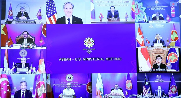 การประชุมรัฐมนตรีต่างประเทศอาเซียน-สหรัฐผ่านระบบวิดีโอคอนเฟอเรนซ์ (Photo:TTXVN) |