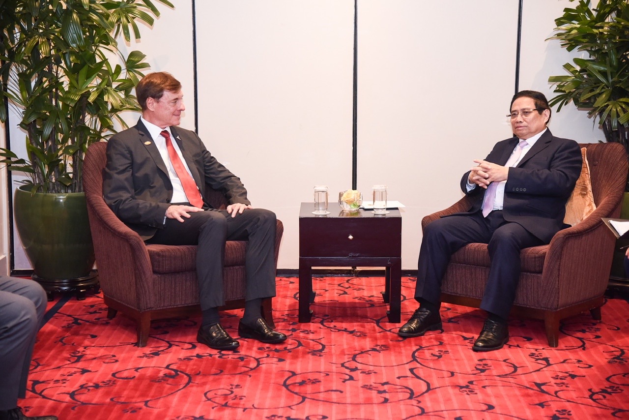 นายกรัฐมนตรี ฝ่ามมิงชิ้ง ได้ให้การต้อนรับนาย Francisco Gomes Neto ประธานเครือบริษัท Embraer |