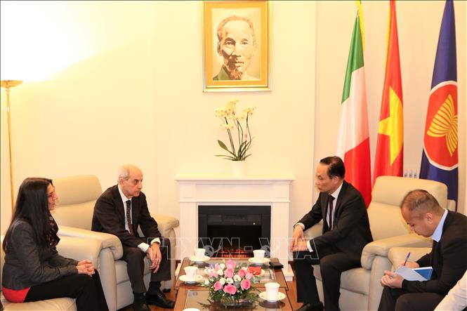 ในการพบปะหารือกับผู้นำรัฐบาล รัฐสภาและพรรคการเมืองต่างๆ ของอิตาลี คณะผู้แทนเวียดนามได้ชื่นชมการขยายความสัมพันธ์หุ้นส่วนยุทธศาสตร์ระหว่างสองประเทศ รวมทั้งกล่าวย้ำถึงผลสำเร็จของเวียดนามในตลอดเกือบ 40 ปีแห่งการเปลี่ยนแปลงใหม่ประเทศ และแนวทางการพัฒนาและการต่างประเทศของพรรคและรัฐเวียดนาม ส่วนผู้นำอิตาลีได้แสดงความประสงค์ที่จะขยายความร่วมมือกับเวียดนามและชื่นชมนโยบายและแนวทางต่างๆ ของเวียดนาม รวมทั้งได้ทูลเชิญสมเด็จพระสันตะปาปาฟรานซิสให้เสด็จเยือนเวียนาม ซึ่งสมเด็จพระสันตะปาปาฟรานซิสได้รับคำเชิญคำดังกล่าว.