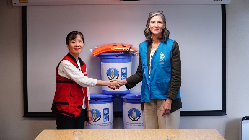 องค์กรยูเอ็นดีพีประจำเวียดนามได้มอบชุดเครื่องใช้ในบ้าน 700 ชุดให้แก่กระทรวงการเกษตรและพัฒนาชนบทเวียดนามเพื่อนำไปช่วยเหลือผู้ประสบภัยจากพายุยางิในจังหวัดเอียนบ๊าย (Photo UNDP) |