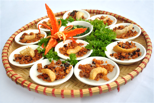 (VOVworld) - ถ้าหากเดินทางมาเที่ยวกรุงเก่าเว้ ก็ไม่ควรพลาดลิ้มลองอาหารที่นี่นะคะ โดยเฉพาะอาหารว่าง เพราะกรุงเก่าเว้ขึ้นชื่อว่าเป็นเมืองที่มีอาหารอร่อยของเวียดนาม อย่างของหวานเว้ก็มีหลากหลายมาก ซึ่งถ้าหากทานของหวานเว้วันละ 1 อย่างก็ต้องใช้เวลาประมาณ 1 เดือน ถึงจะทานครบทุกอย่าง อาหารพื้นเมืองที่นี่มีขั้นตอนการทำที่พิถีพิถัน ซึ่งไม่ใช่แค่เฉพาะรสชาติเท่านั้น แต่ต้องมีกลิ่มหอมและดูสวยงามชวนทานด้วย สิ่งที่แปลกคือ อาหารที่นี่จะไม่ตักใส่เต็มชาม แค่ใส่น้อยๆพอกินเท่านั้น จนกลายเป็นเสน่ห์ของเว้....