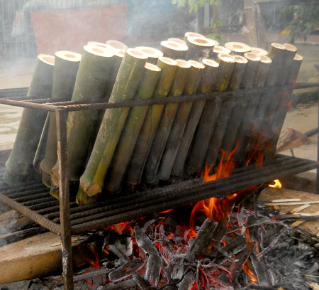 (VOVworld) - เกิมลามหรือคนไทยเรียกว่าข้าวหลามเป็นอาหารพื้นเมืองอย่างหนึ่งของชาวเขาในจังหวัดต่างๆในภาคเหนือเวียดนาม ซึ่งการทำข้ามหลามของเวียดนามนั้นจะแตกต่างกับข้าวหลามของคนไทยยังไงเชิญท่านมาศึกษาวิธีการทำของชนกลุ่มน้อยเผ่าไทในอำเภอหมกโจว์ จังหวัดเซินลา