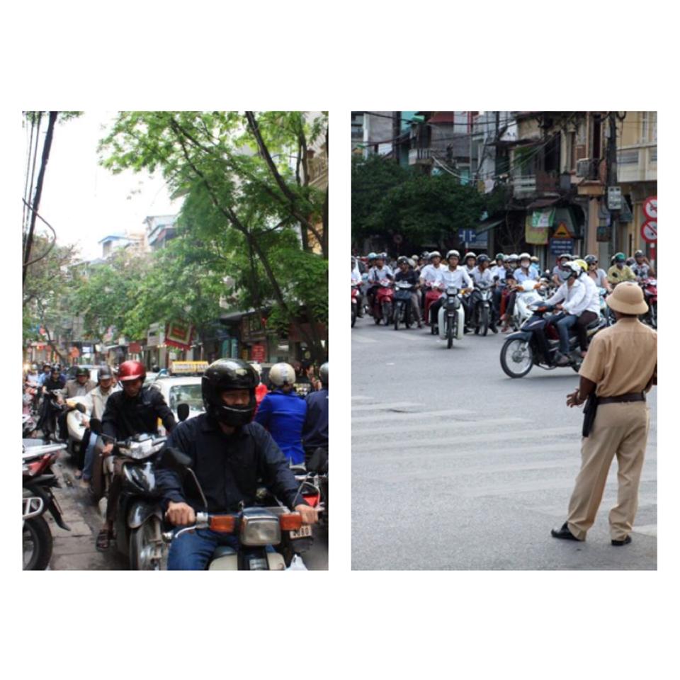 กระผมได้ไปเรียนและใช้ชีวิตที่เมืองฮานอยประเทศเวียดนาม เป็นการใช้ชีวิตที่ต่างประเทศเป็นครั้งแรกของผม รูปภาพที่นำมานี้เป็นรูปภาพการจราจรในเมืองฮานอย ซึ่งการจราจรในใจกลางเมืองหลวงนั้นเต็มไปด้วยความวุ่นวาย และดังคับครั่งไปด้วยเสียงแตรรถ บนท้องถนนนั้นเต็มไปด้วยรถจักรยายนต์ และรถยนตร์มากมาย ซึ่งเป็นยานพาหนะหลักของผู้คนในสมัยนี้ ซึ่งเป็นการจราจรที่วุ่นวายมาก แต่ที่น่าแปลกใจอยู่สิ่งหนึ่งก็คือ บนท้องถนนนั้นแทบจะไม่มีอุบัติเหตุเกิดขึ้นเลย และนี่เป็นสิ่งที่ทำให้ผมได้ข้อคิดหลายอย่าง ไม่ว่าจะเป็นการเอื้อเฟื้อ เผื่อแผ่ต่อกันช่วยเหลือซึ่งกันและกัน ไม่เห็นแก่ตัว เห็นแก่ประโยชน์ส่วนรวม ความมีน้ำใจต่อเพื่อนมนุษย์ด้วยกัน และการเคารพกฏหมายจราจรและกฏหมายส่วนรวมซึ่งเป็นกฏหมายบ้านเมืองที่สำคัญอันจะทำให้สังคมมีความสงบสุข .