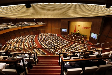 อาคารรัฐสภาใหม่ของเวียตนาม เริ่มลงมือก่อสร้างเมื่อเดือนตุลาคม 2009 ตั้งอยู่ที่ถนน ดก เลิ๊บ มองจากตัวอาคารรัฐสภาออกไปจะเห็นสุสานลุงโฮ อยู่ฝั่งตรงข้าม และอยู่ใกล้เขตโบราณสถานป้อมและกำแพงเมืองโบราณทังลอง ตัวตึกสูง 39 เมตรมีสถาปัตยกรรมรูปทรงสี่เหลี่ยม ห้องประชุมใหญ่จะเป็นรูปวงกลมอยู่ตรงกลาง มีทั้งหมด 8 ชั้นจะมีห้องใต้ดิน 2 ชั้น มีห้องในอาคารทั้งหมด 80 ห้อง ห้องประชุมรัฐสภาสามารถจุคนได้ 600 ที่นั่ง