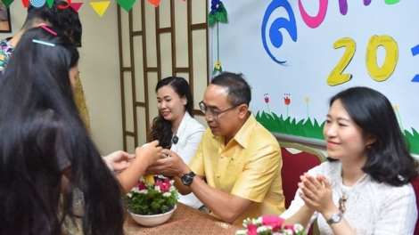 กิจกรรมฉลองวันสงกรานต์ที่ศูนย์ภาษาและวัฒนธรรมไทยสังกัดมหาวิทยาลัยฮานอย