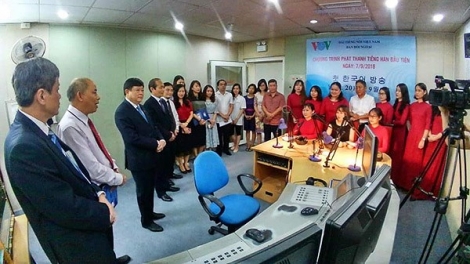 (VOVWORLD) -เวลา 18.00 น.ของวันที่ 7 กันยายนที่ผ่านมา สถานีวิทยุเวียดนามได้ออกอากาศรายการภาคภาษาเกาหลีเป็นครั้งแรก ซึ่งตรงกับโอกาสฉลองครบรอบ 73 ปีวันก่อตั้งสถานีวิทยุเวียดนามหรือวีโอวี โดยรายการภาคภาษาเกาหลีออกอากาศทุกวันผ่านระบบเอฟเอ็ม โดยพื้นที่กรุงฮานอยรับฟังได้ที่ความถี่ 105.5 MHz ส่วนนครโฮจิมินห์และจังหวัดกว๋างนิงห์รับฟังได้ที่ความถี่ FM 105.7 MHz พร้อมทั้งยังสามารถฟังออนไลน์ผ่านเว็ปไซต์ vovworld.vn/ko-KR.vov