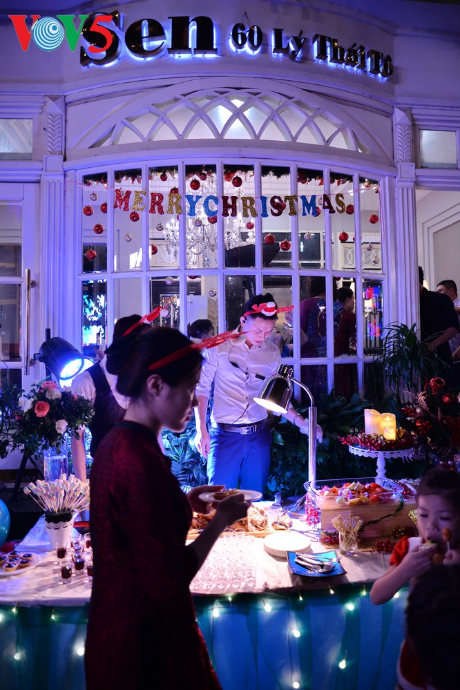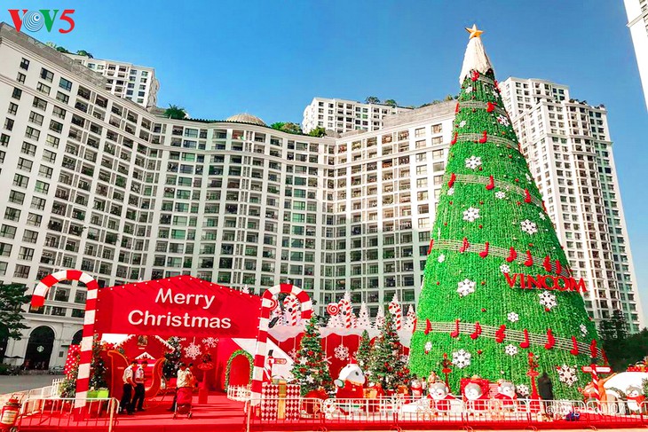 | ในตอนค่ำ ไฟที่ได้รับการตกแต่งประดับประดาบนต้นคริสต์มาสทำให้บรรยากาศในกรุงฮานอยมีความสวยงามมากขึ้น (การตกแต่งภายนอกของ Vincom Center Tran Duy Hung) |