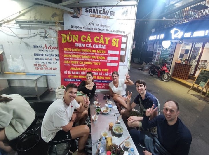 | ร้านขนมจีนปลาทอดเซิมเกยซี ( Sâm Cây Si) ขายมานานกว่า 20 ปี อยู่ในซอยเล็กๆ ของเขตหว่านเกี๊ยม มีลูกค้าทั้งชาวเวียดนามและชาวต่างชาติ (Photo: Miley Asparagus) |