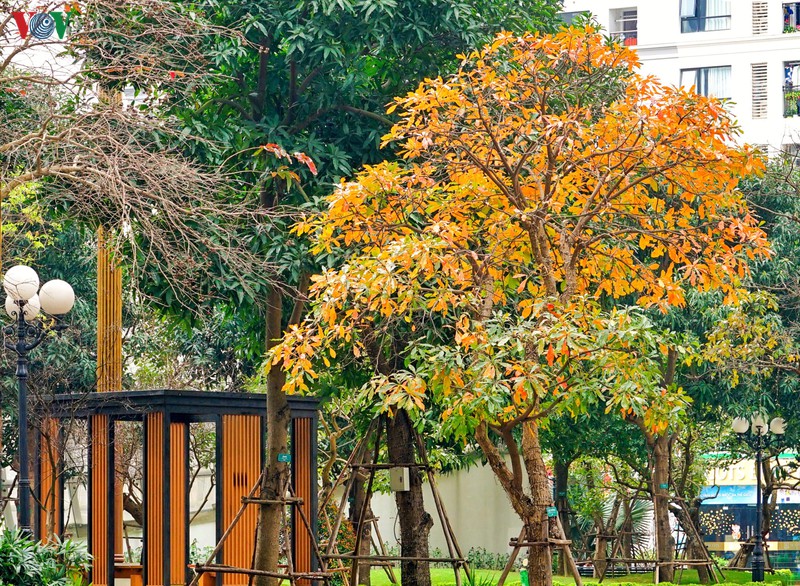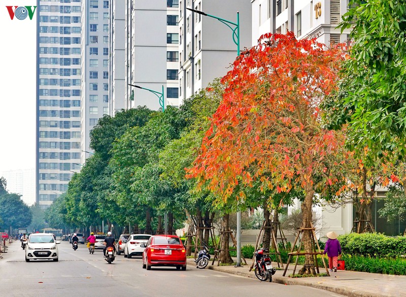 ในฤดูนี้ ใบของต้นจิกน้ำตามถนนสายต่างๆในกรุงฮานอยจะเปลี่ยนเป็นสีแดง |
