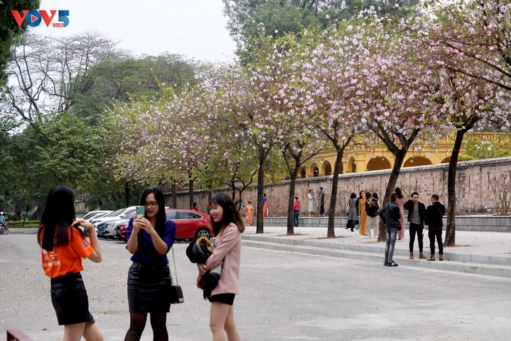 ในช่วงต้นเดือนมีนาคมของทุกปี ดอกกาหลงในกรุงฮานอยบานสะพรั่งอวดโฉมอย่างสวยงาม |