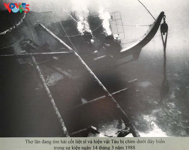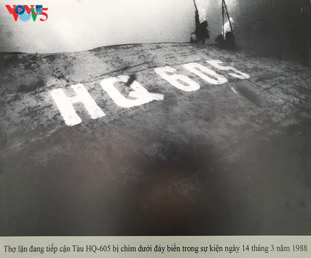 นักดำน้ำเข้าถึงเรือ HQ-605 ที่อับปางจากเหตุการณ์วันที่ 14 มีนาคมปี 1988 |