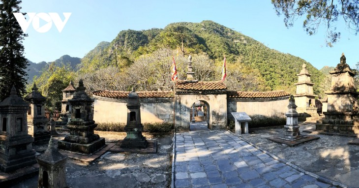 ที่เชิงเขา ศูนย์วัฒนธรรม จุ๊กเลิมเอียนตื๋อ ที่สร้างขึ้นเมื่อปี 2018เป็นกลุ่มสถาปัตยกรรมของราชวงศ์เจิ่นในศตวรรษที่ 13 ที่มีเอกลักษณ์ "จิตวิญญาณของเวียดนาม เอกลักษณ์ของราชวงศ์เจิ่นและของเถี่ยนเหวี่ยนจุ๊กเลิม " |