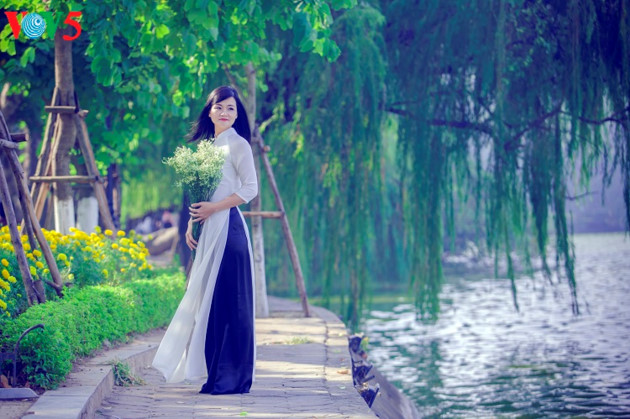 (VOVWORLD) -อ๊าวหญ่ายหรือเสื้อยาวประจำชาติเวียดนามนับวันได้รับความนิยมจากสตรีเวียดนามสำหรับใส่ถ่ายรูปในช่วงตรุษเต๊ตประเพณี อ๊าวหญ่ายมีความหลากหลายทั้งสีสันและรูปแบบ ไม่ว่าจะเป็นแนวพื้นเมืองหรือแนวใหม่ล้วนช่วยเพิ่มเสน่ห์ให้แก่สตรีเวียดนามที่สวมใส่