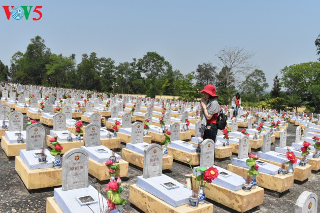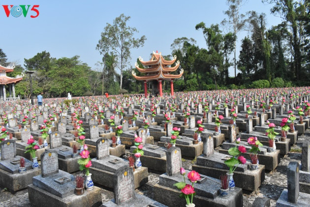 ใจกลางของกำแพงเก่ากว๋างตริคืออนุสาวรีย์ทหารพลีชีพเพื่อชาติที่ได้รับการก่อสร้างจำลองเป็นสุสานหมู่และตามปรัชญาของหยินและหยางที่สื่อความหมายขอให้ดวงวิญญาณของทหารพลีชีพเพื่อชาติไปสู่สุคติ |