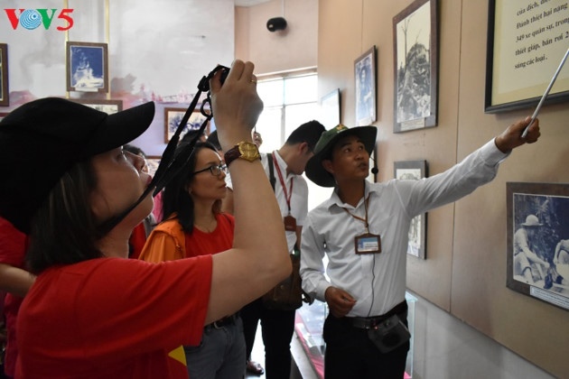 นักท่องเที่ยวเยี่ยมชมพิพิธภัณฑ์ในกำแพงเก่ากว๋างตริ. |