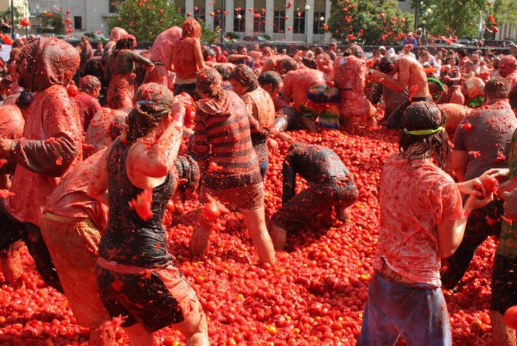 เทศกาลปามะเขือเทศของสเปนหรือ La Tomatina คือเทศกาลผลไม้ที่ใหญ่ที่สุดในยุโรป โดยดึงดูดนักท่องเที่ยวชาวต่างชาติ ซึ่งส่วนใหญ่เป็นชาวอังกฤษ สหรัฐและญี่ปุ่นให้เข้าร่วมเป็นจำนวนมาก (Cal Neva) |
