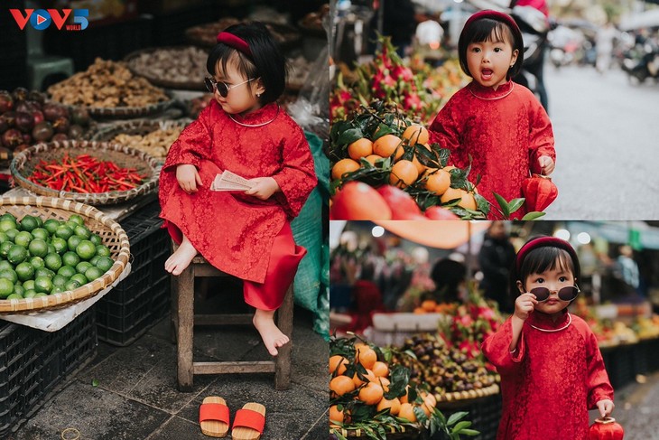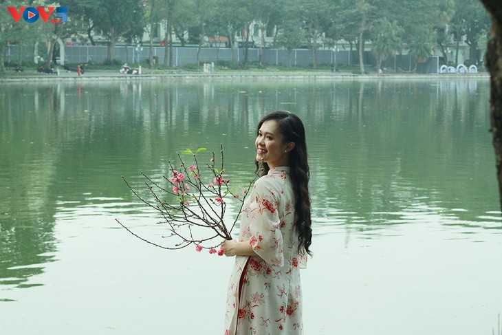 | หนุ่มสาวหลายคนชวนกันถ่ายรูปชุดอ๊าวหย่ายสำหรับตรุษเต็ตที่น่ารัก |