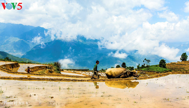 ทั้งครอบครัวไปทำนา ภาพที่คุ้นเคยในเขตตะวันตกเฉียงเหนือ (ผู้ถ่าย เหงียนแองต๊วน) |