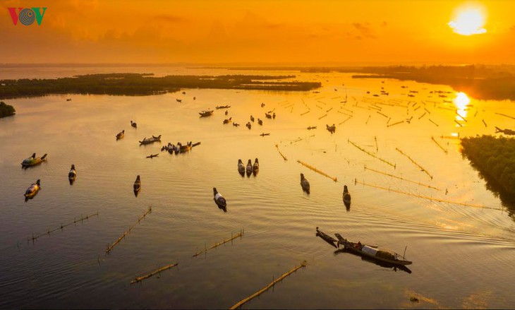 | ชาวประมงที่นี่ส่วนใหญ่อาศัยในเรือ ประกอบอาชีพจับปลาและกุ้งบริเวณลากูน กว๋างเลย จังหวัดเถื่อเทียนเว้ |