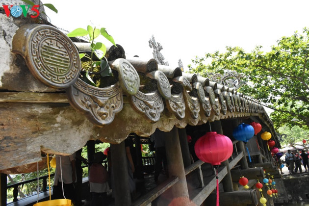 (VOVWORLD) - สะพานหลังคามุงกระเบื้องแทงตว่านได้รับการก่อสร้างตามสถาปัตยกรรมหลังคารูปทรงโค้งเหมือนสายรุ้ง และข้างหลังคือสะพานที่ทำจากไม้ ซึ่งไม่เพียงแต่เป็นสถาปัตยกรรมของเขตโบราณสถานที่มีคุณค่าทางประวัติศาสตร์และวัฒนธรรมเท่านั้น หากยังเป็นทัศนียภาพที่เป็นเอกลักษณ์ ซึ่งดึงดูดนักท่องเที่ยวให้มาเยือนเป็นจำนวนมาก