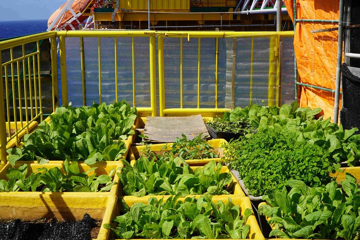 | ถึงแม้คลื่นลมแรง แต่พืชผักยังคงเจริญงอกงามบนแท่นตรวจการทางทะเลเพื่อมีส่วนร่วมปรับปรุงคุณภาพชีวิตของเจ้าหน้าที่ทหารในแนวหน้าของปิตุภูมิ |