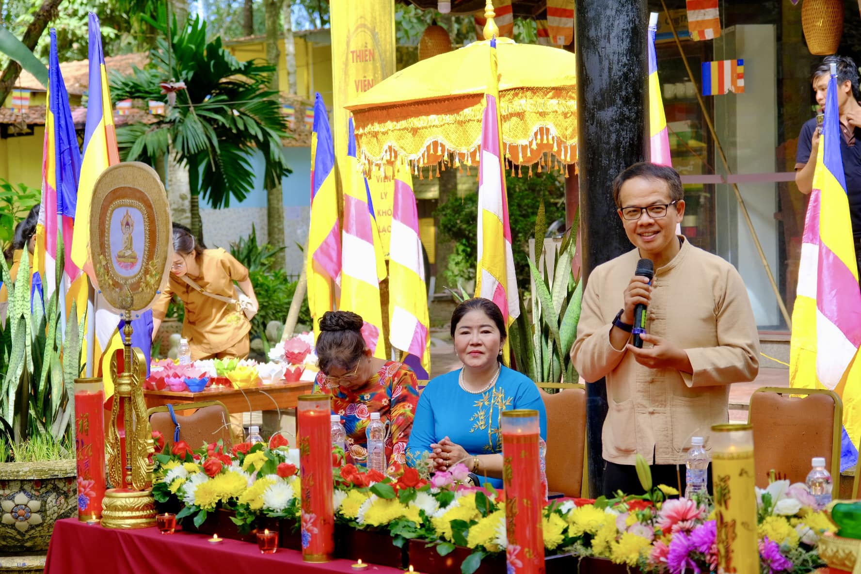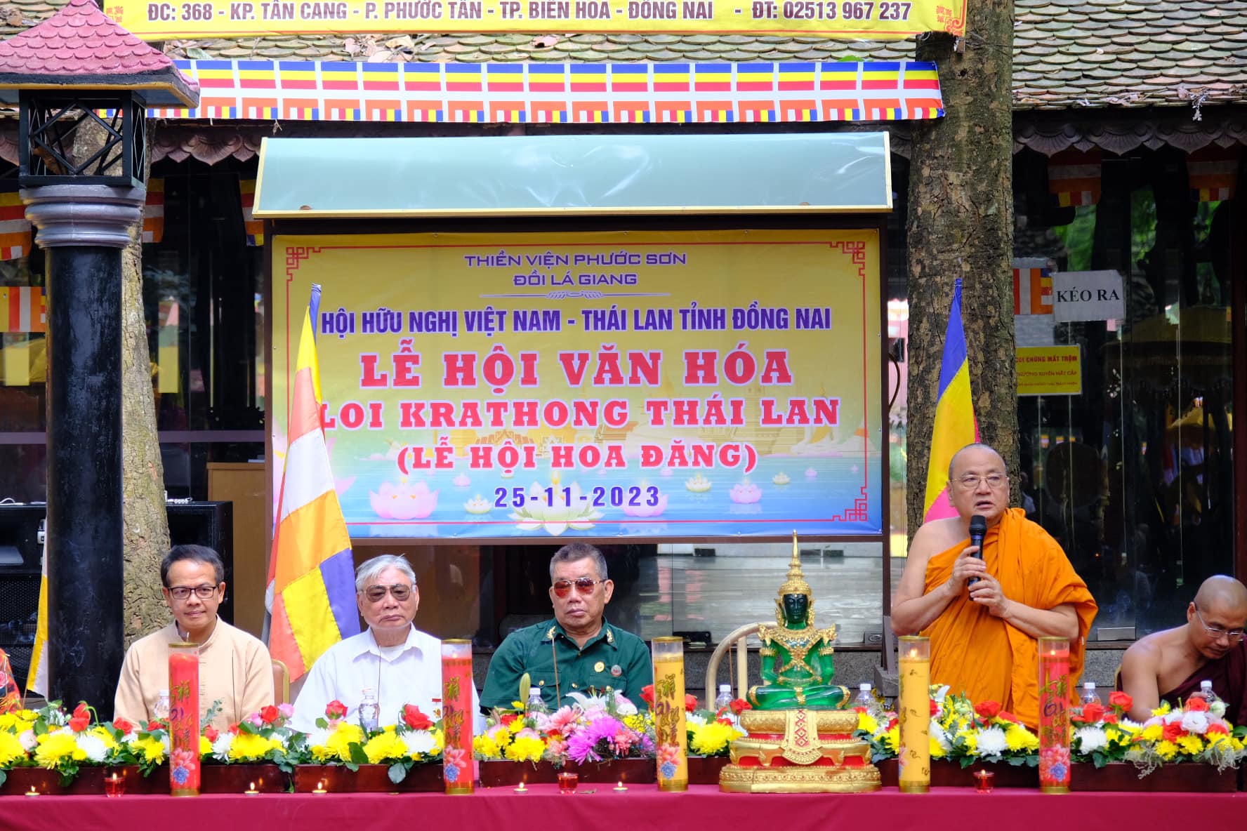 ในการกล่าวปราศรัยในงาน พระมหาเถระ ทิ๊กบิ๋วแช้ง เผยว่า นี่เป็นครั้งที่สองที่สมาคมมิตรภาพเวียดนาม-ไทยประสานงานกับเถี่ยนเหวียนเฟือกเซินจัดงานเทศกาลลอยกระทง |
