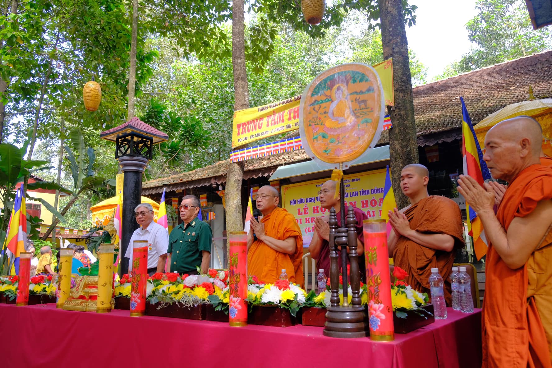 งานนี้มีพระมหาเถระ ทิ๊กบิ๋วแช้งรองประธานสภาบริหารพุทธสมาคมสาขาจังหวัดด่งนาย ตัวแทนสถานประกอบการไทยและสมาชิกของสมาคมมิตรภาพลาว-กัมพูชา-ไทย นักศึกษาลาวที่อาศัยในจังหวัดฯเข้าร่วม |