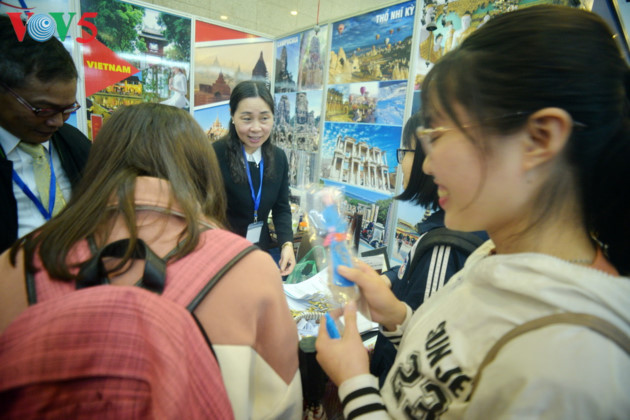 | งานนิทรรศการการท่องเที่ยวนานาชาติเวียดนามหรือ VITM 2019 เป็นการจัดงานครั้งใหญ่ที่สุด โดยมีสถานประกอบการ 720 แห่ง สำนักงานส่งเสริมการท่องเที่ยวจาก 27 ประเทศและดินแดนและจาก 47 จังหวัดและนครของเวียดนามเข้าร่วม (บูธของบริษัทนำเที่ยว Hanoitourist ในงาน) |