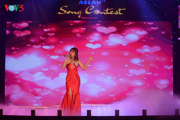 ก่อนเริ่มการประกวด บรรดานักร้องได้ประสานเสียงร้องเพลงของการประกวดเสียงเพลงอาเซียนบวก 3 ปี 2017 ที่มีชื่อว่า “เพลงแห่งอาเซียน” ประพันธ์โดยนาย เหงียนเท้กี๋ ประธานสถานีวิทยุเวียดนามหรือวีโอวีและหัวหน้าคณะกรรมการชี้นำการประกวด ซึ่งมีเนื้อร้องเกี่ยวกับความสามัคคี ความกลมกลืนและการสังสรรค์วัฒนธรรมระหว่างประเทศต่างๆ