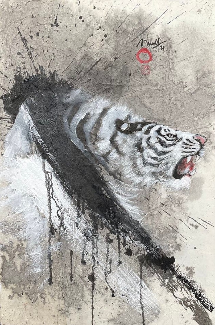 | ผ่านภาพวาดเสือ จิตรกร เหงียนดวานนิงห์ ยังต้องการสื่อถึงปีใหม่ที่แข็งแกร่งและอารมณ์ความรู้สึกที่หลากหลาย |