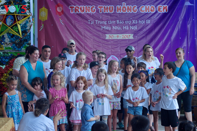 นักร้องเหงียนหว่างหยุง ที่เข้าร่วมการประกวด The Voice Vietnam 2015 ร้องเพลงให้ผู้สูงอายุและเด็กๆในศูนย์ |