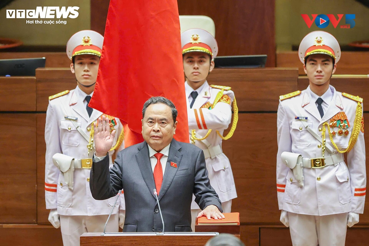 ด้วยเสียงสนับสนุนอย่างเป็นเอกฉันท์ 491 เสียง สภาแห่งชาติได้อนุมัติมติเลือกนาย เจิ่นแทงเหมิน ประธานสภาแห่งชาติสมัยที่ 15 ดำรงตำแหน่งประธานสภาแห่งชาติสมัยที่ 16 (ภาพ: VTC News)