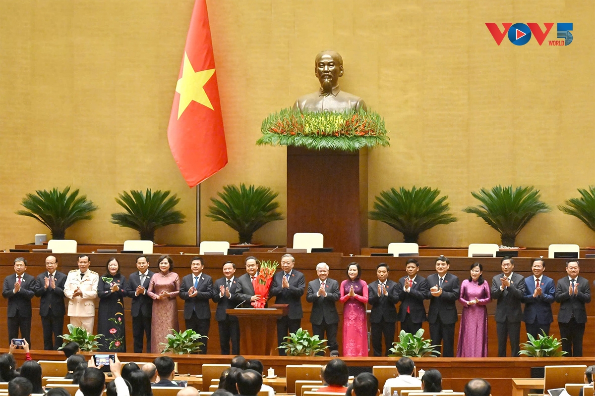 เช้าวันที่ 7 เมษายน ด้วยเสียงสนับสนุนอย่างเป็นเอกฉันท์495 เสียง สภาแห่งชาติได้อนุมัติมติการเลือกท่าน โตเลิมเลขาธิการใหญ่พรรคดำรงตำแหน่งประธานประเทศ วาระปี 2026–2031 (ภาพ: VTC News)
